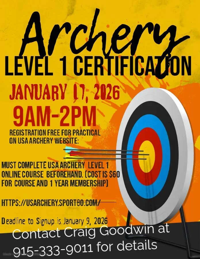 Our next USA Archery Level 1 Practical will be on January 17, 2026 from 9:00 am to 2:00 PM at the OA Building at Camp Tiak, with hands on at the Archery Range.